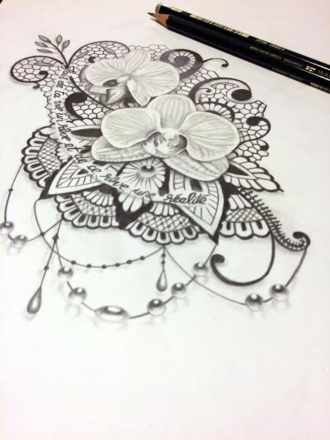 In this custom tattoo design, we made an original orchids with sexy lace and pearls.