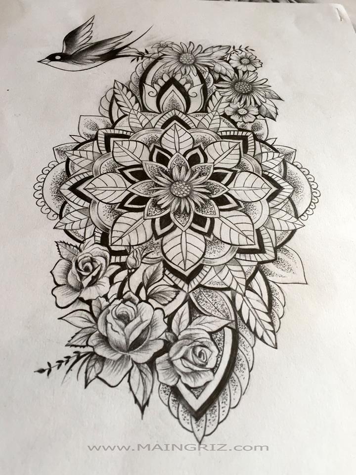 For custom tattoo design, we have created a mandala sexy tattoo with roses and sunflowers.